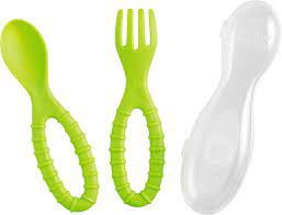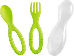 - Bộ thìa nĩa ăn cho bé bao gồm 1 thìa, 1 nĩa và 1 vỏ đựng