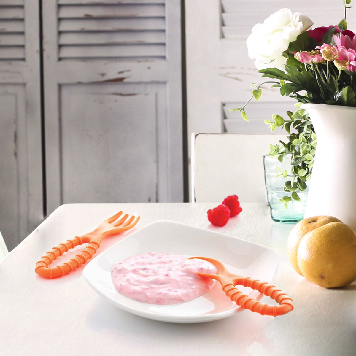 Bộ thìa nĩa ăn cho bé của Mastrad có thiết kế nhỏ gọn, dễ cầm nắm cho trẻ nhỏ. Tay cầm dạng tròn và mềm, không góc cạnh, an toàn cho răng và nướu của trẻ.
