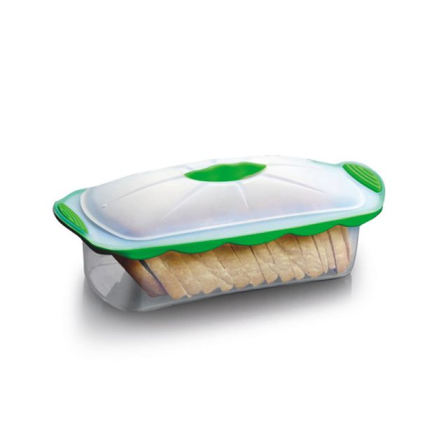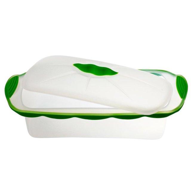 - Nồi silicone hình chữ nhật có góc bo tròn, đi kèm nắp đậy