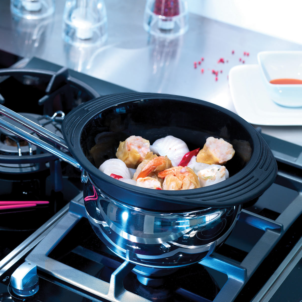 Nồi hấp 2 tầng Mastrad dùng để hấp hoặc hâm nóng cùng một lúc nhiều món ăn, tiện lợi và nhanh chóng cho bữa cơm gia đình.