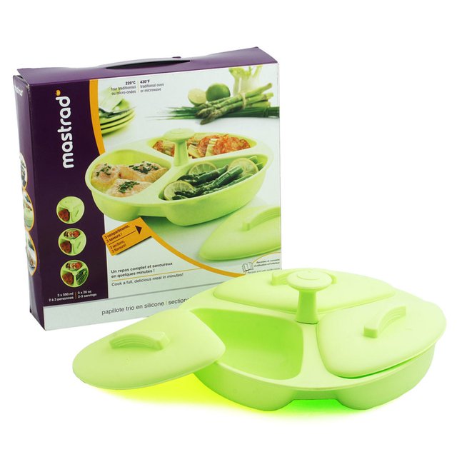 Nồi hấp 3 ngăn silicone Mastrad giúp bạn chuẩn bị cùng lúc nhiều món ăn khác nhau, nhờ thiết kế 3 ngăn riêng biệt. Sản phẩm tiện dụng cho bữa cơm gia đình khi đồng thời hấp hoặc hâm nóng món thịt, rau và cơm. Sản phẩm màu xanh lá ngọt ngào.