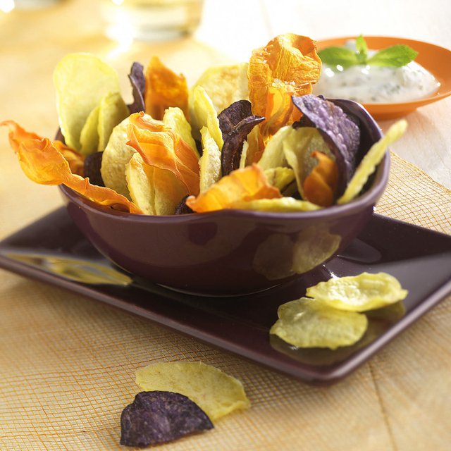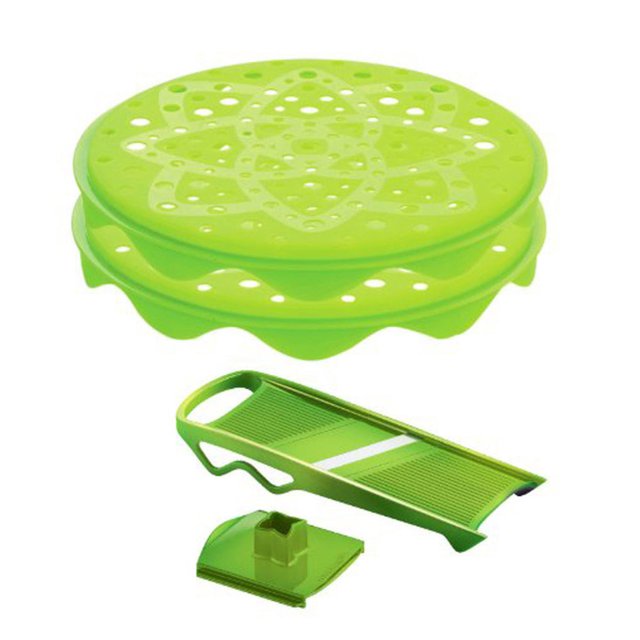 Làm snack, chip từ rau củ nướng mà không cần đến dầu mỡ độc hại thật dễ dàng với Topchips. Bộ sản phẩm gồm 2 khay silicone, 1 bàn bào kèm dụng cụ ghim củ quả khi bào.
