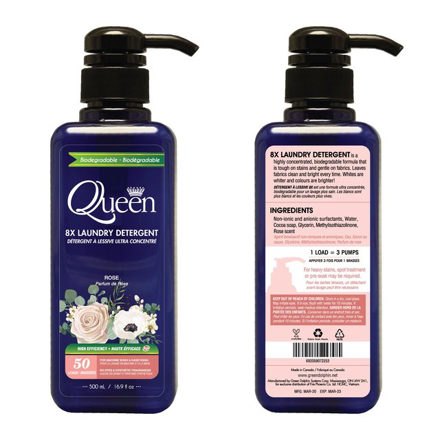 QUEEN là thương hiệu Canada do công ty Green Dolphin Systems Corp. sản xuất. Với kinh nghiệm nhiều năm, từ 1997 đến bây giờ, công ty luôn dẫn đầu trong việc sản xuất các dòng sản phẩm tẩy rửa mạnh, chiết xuất từ thiên nhiên, không gây độc hại sức khỏe và môi trường.