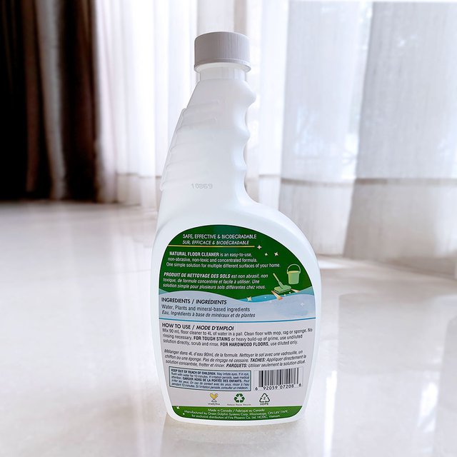 - Nước lau nhà chứa thành phần thiên nhiên và hữu cơ, phân hủy sinh học, không để lại những vệt hóa chất độc hại. Dung dịch cô đặc giữ cho mặt sàn sạch bóng lại không bị rít sau khi lau rửa.