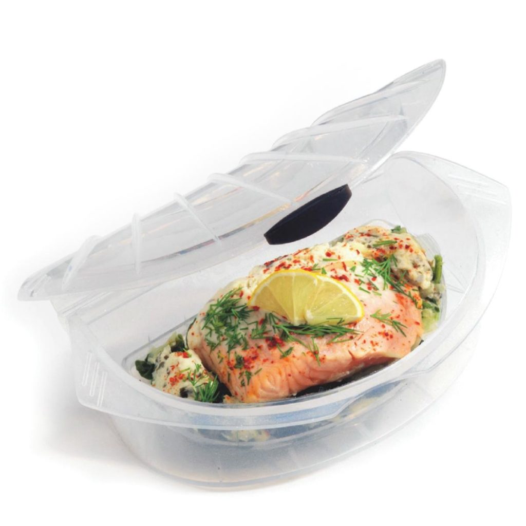 Hộp hấp thực phẩm Meshell của SiliconeZone có thiết kế tiện dụng để quay thực phẩm trong lò hấp, lò vi sóng, hoặc bảo quản trong tủ lạnh.