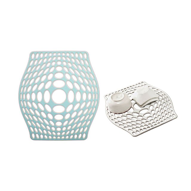- Tấm lót bồn rửa chén có lỗ thoát nước được thiết kế theo phong cách Op Art, giúp góc bếp của bạn thêm sáng sủa
